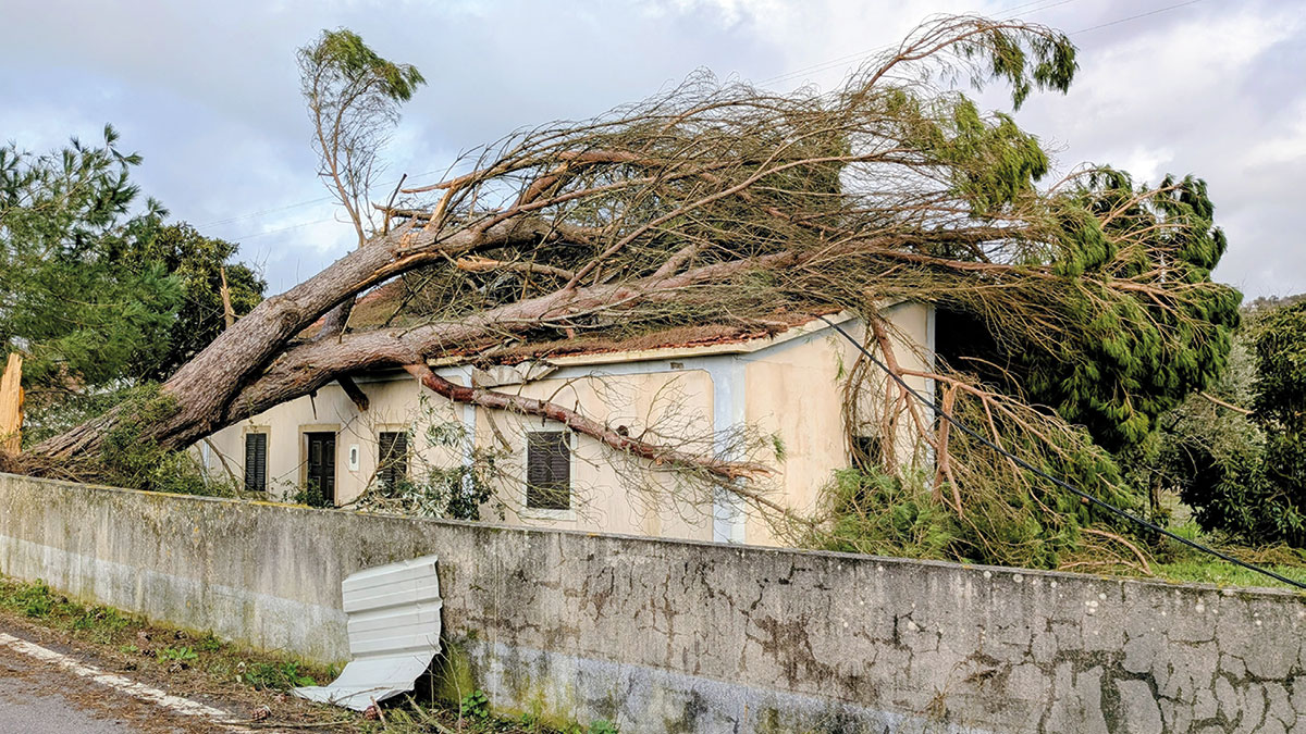 Postes caídos ou partidos e fios espalhados pelo chão, árvores tombadas ou arrancadas, muitas casas com danos, telhados danificados, chaminés partidas, painéis solares destruídos, coberturas arrastadas dezenas de metros, portões arrancados, muros demolidos, estruturas destruídas, carros estragados, pessoas desalojadas, contentores e ecopontos do lixo arrastados e virados, muitas estradas obstruídas, sinais de trânsito arrancados, terrenos inundados...